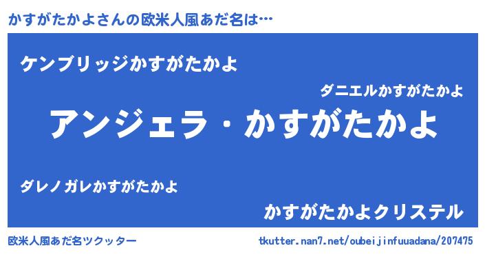 | 男性向けラノベタイトル風あだ名 | 『かすがたかよに滅ぼされるだけの簡単なお仕事です』 |