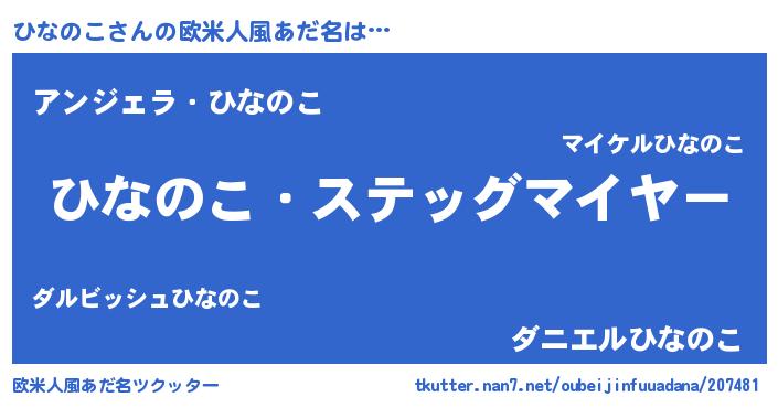 | 男性向けラノベタイトル風あだ名 | 『うちのひなのこが世界を掌握している!』 |
