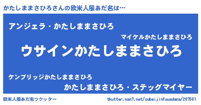 | 男性向けラノベタイトル風あだ名 | 『かたしままさひろの嫁は女の子じゃないと思った?』 |
