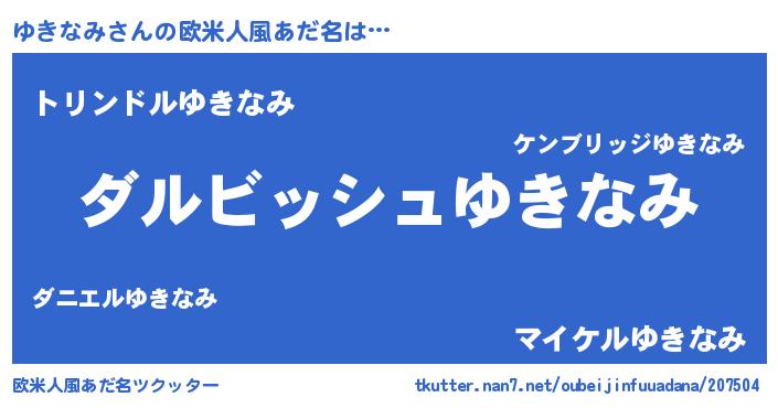 | ファンタジー風あだ名 | 『ユキディッシュ』『ユリユキヴァット』 |