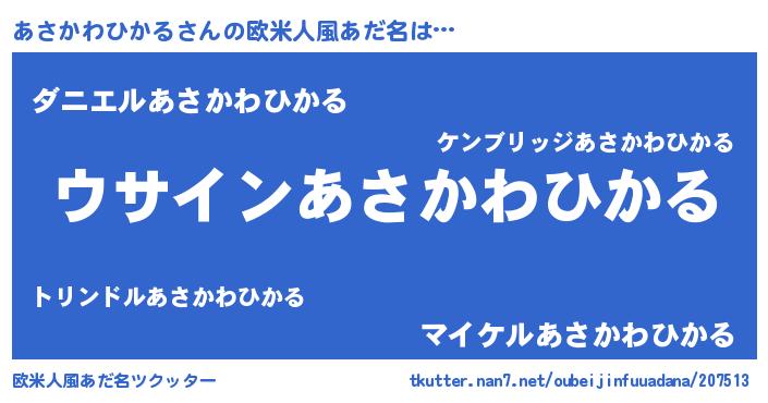 | 男性向けラノベタイトル風あだ名 | 『ダンジョンにあさかわひかるを求めるのは間違っているだろうか』 |