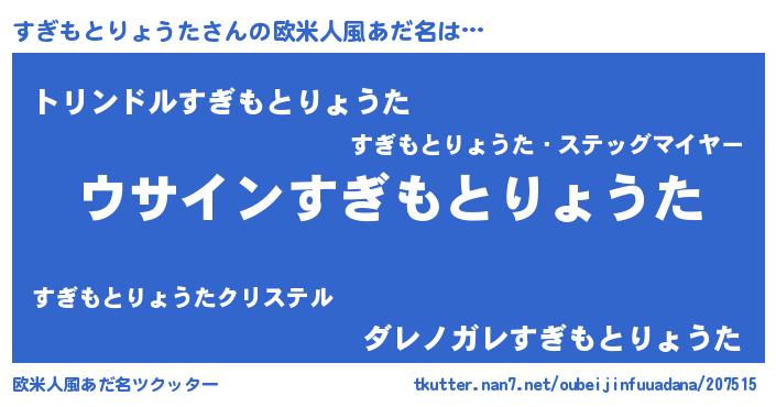 | 男性向けラノベタイトル風あだ名 | 『すぎもとりょうたの嫁は女の子じゃないと思った?』 |