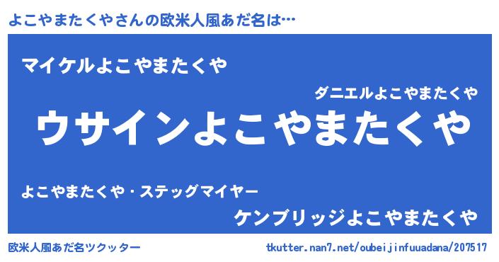 | 男性向けラノベタイトル風あだ名 | 『ダンジョンによこやまたくやを求めるのは間違っているだろうか』 |