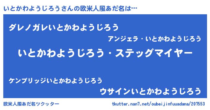 | 意味不明あだ名 | 『住所不定無職いとかわようじろう(59歳)』 |