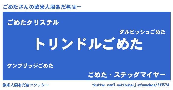 | 女子向けラノベタイトル風あだ名 | 『ごめたの玉の輿計画!』『闇のごめた』 |