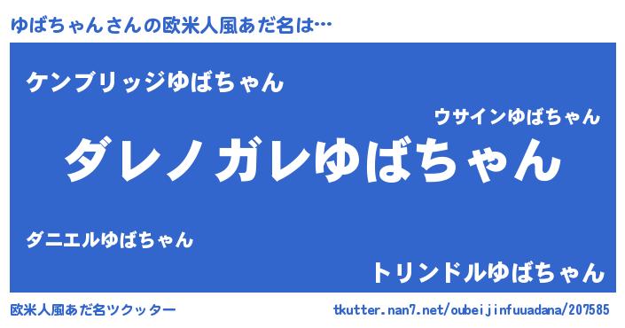| 恥ずかしいあだ名 | 『ユバチャンデラックス』『ユバリンリン』 |