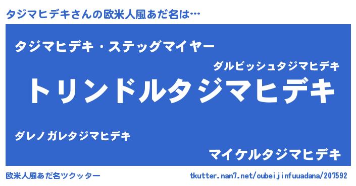 | 男性向けラノベタイトル風あだ名 | 『タジマヒデキ~年齢イコール彼女いない歴の魔法使い~』 |