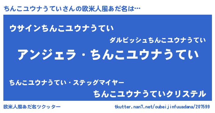 | 男性向けラノベタイトル風あだ名 | 『ちんこユウナうていに滅ぼされるだけの簡単なお仕事です』 |