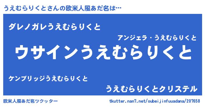 | 男性向けラノベタイトル風あだ名 | 『ダンジョンにうえむらりくとを求めるのは間違っているだろうか』 |