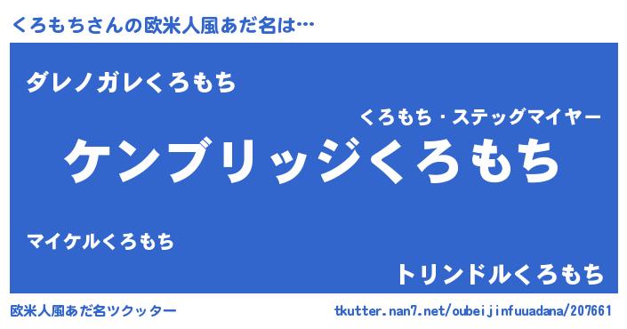| 女子向けラノベタイトル風あだ名 | 『くろもちストレイドッグス』 |