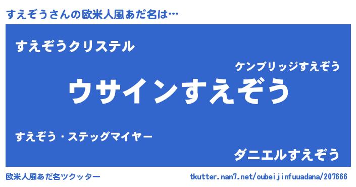 | 男性向けラノベタイトル風あだ名 | 『すえぞうの嫁は女の子じゃないと思った?』 |