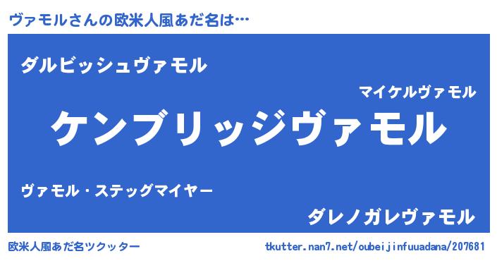 | ヘコむあだ名 | 『ヴァモル(遠い目)』『ヴァにゅー』 |