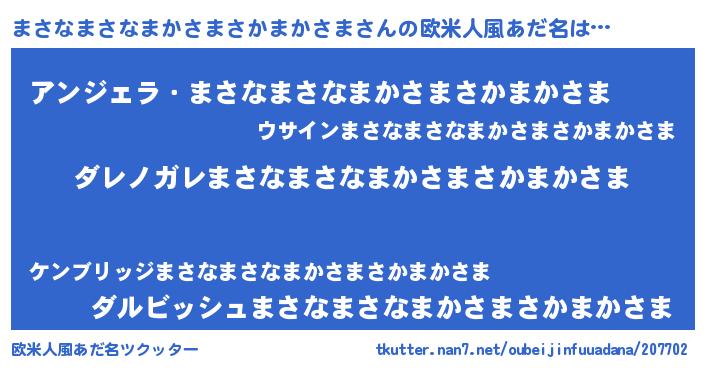 | 意味不明あだ名 | 『住所不定無職まさなまさなまかさまさかまかさま(6歳)』 |