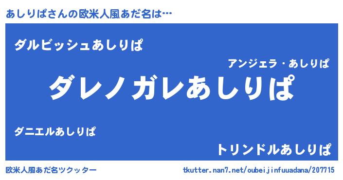 | 料理風あだ名 | 『あしりぱのカルパッチョ風』 |