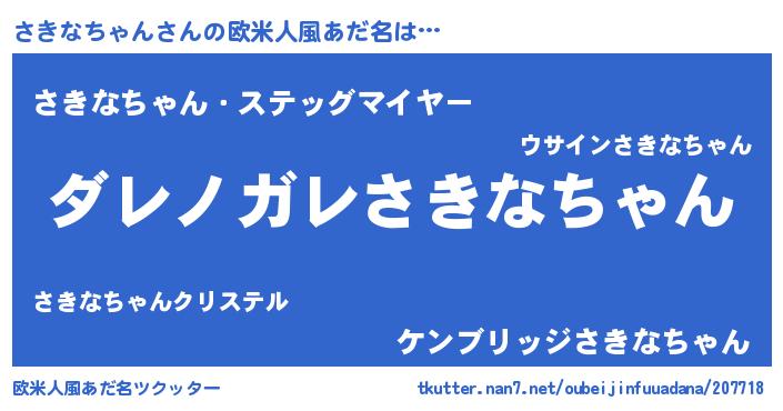 | 意味不明あだ名 | 『住所不定無職さきなちゃん(77歳)』 |