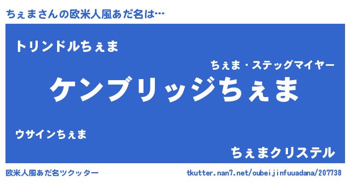 | 女子向けラノベタイトル風あだ名 | 『ちぇまなんてお断りですっ。』 |
