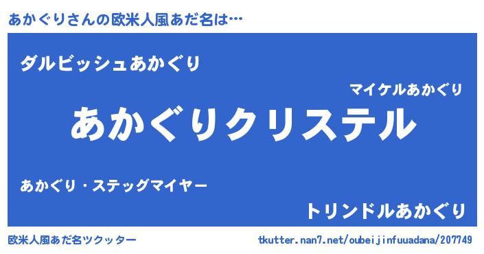 | ヒーロー風カッコイイあだ名 | 『ウルトラあかぐりマン』『ネオアカグリ』 |