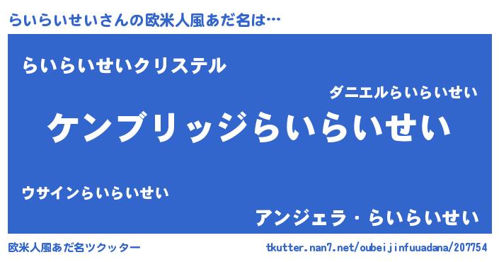 | 男性向けラノベタイトル風あだ名 | 『Re:らいらいせいから始める異世界生活』 |