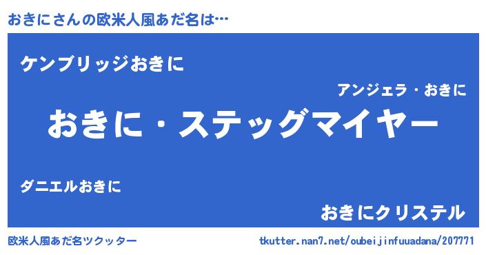 | 男性向けラノベタイトル風あだ名 | 『うちのおきにが世界を掌握している!』 |