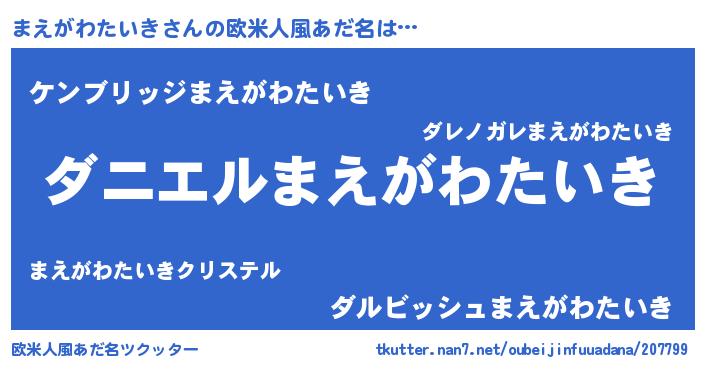 | ヘコむあだ名 | 『まえがわたいき(笑)』『酢こんぶ』 |