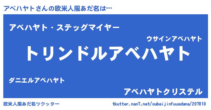 | 女子向けラノベタイトル風あだ名 | 『アベハヤトの玉の輿計画!』 |