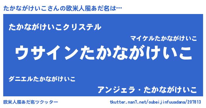| 男性向けラノベタイトル風あだ名 | 『たかながけいこの嫁は女の子じゃないと思った?』 |