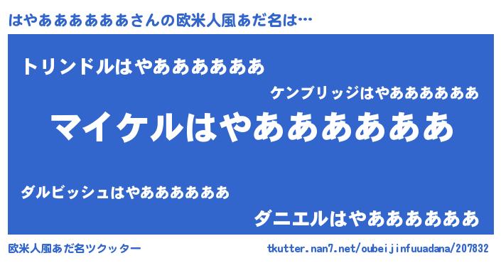 | ヘコむあだ名 | 『はやふぇ~』『はやああああああ(小並感)』 |