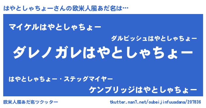 | 意味不明あだ名 | 『住所不定無職はやとしゃちょー(98歳)』 |