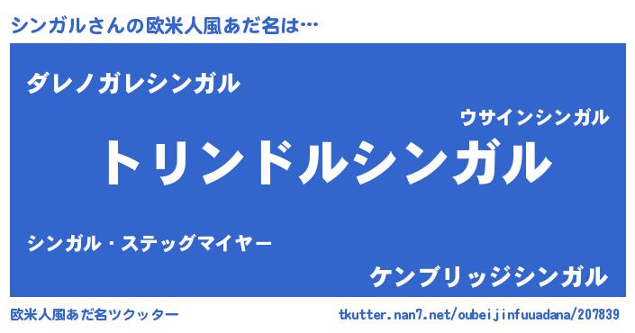 | 意味不明あだ名 | 『つくし科シンガル属』『自称シンガル』 |