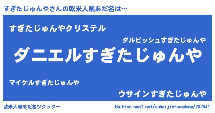 | 男性向けラノベタイトル風あだ名 | 『おまえをオタクにしてやるから、俺をすぎたじゅんやにしてくれ! 』 |
