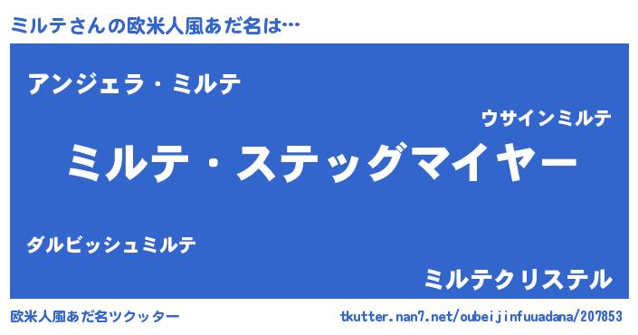 | 意味不明あだ名 | 『ミルテフォーエバー』『永久保存ミルテ』 |