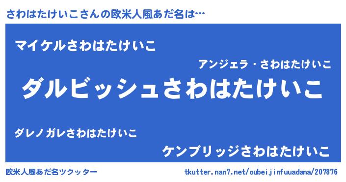 | ヒーロー風カッコイイあだ名 | 『ネオサワハタケイコ』『仮面サワダー』 |