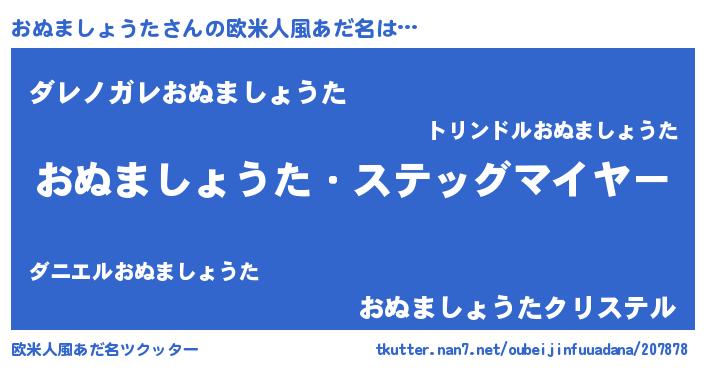 | 男性向けラノベタイトル風あだ名 | 『うちのおぬましょうたが世界を掌握している!』 |