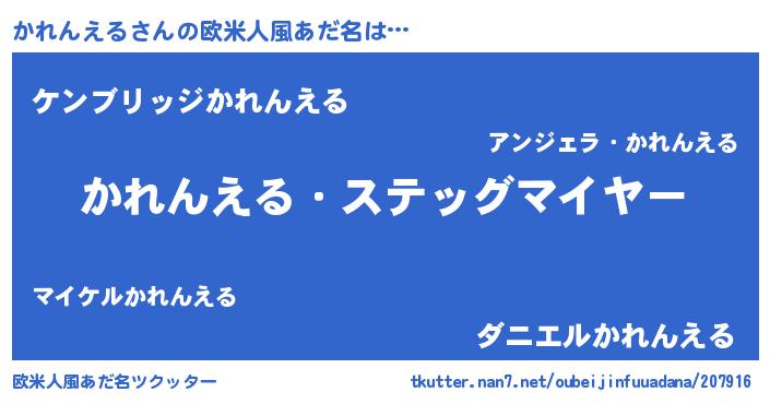 | 男性向けラノベタイトル風あだ名 | 『うちのかれんえるが世界を掌握している!』 |