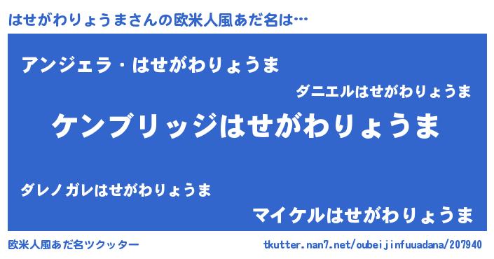 | 男性向けラノベタイトル風あだ名 | 『Re:はせがわりょうまから始める異世界生活』 |
