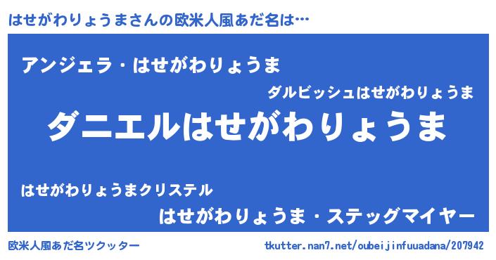 | 男性向けラノベタイトル風あだ名 | 『おまえをオタクにしてやるから、俺をはせがわりょうまにしてくれ! 』 |