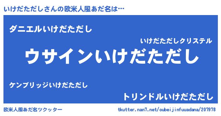 | 胡散臭い通販商品みたいなあだ名 | 『信頼と実績のサプリメント…その名も「いけだただし」』 |