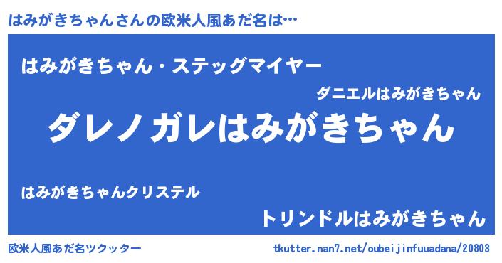 | 意味不明あだ名 | 『住所不定無職はみがきちゃん(8歳)』 |