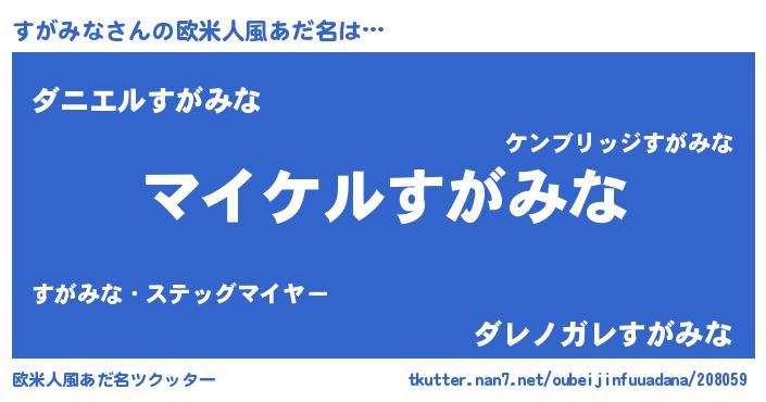 | 男性向けラノベタイトル風あだ名 | 『スガミナアートオンライン』 |