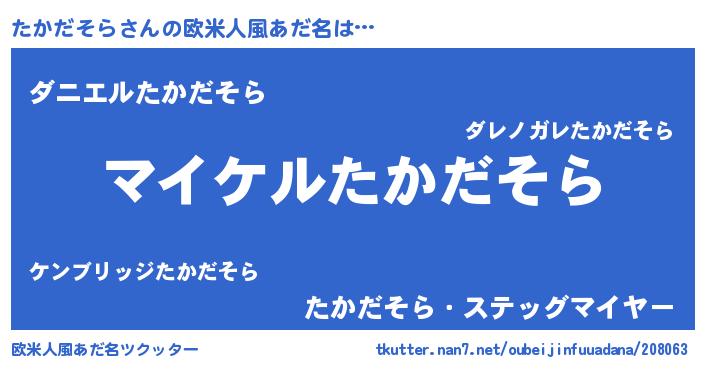| 胡散臭い通販商品みたいなあだ名 | 『必ず成功する霊験あらたかなお札…その名も「たかだそら」』 |