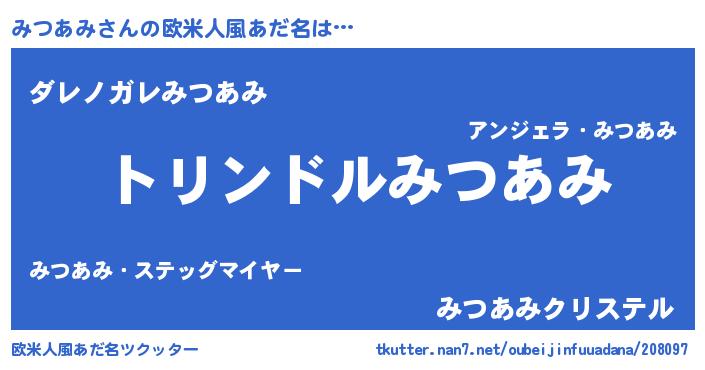 | ヘコむあだ名 | 『牛乳』『みつにー』『みつあみ(爆)』 |