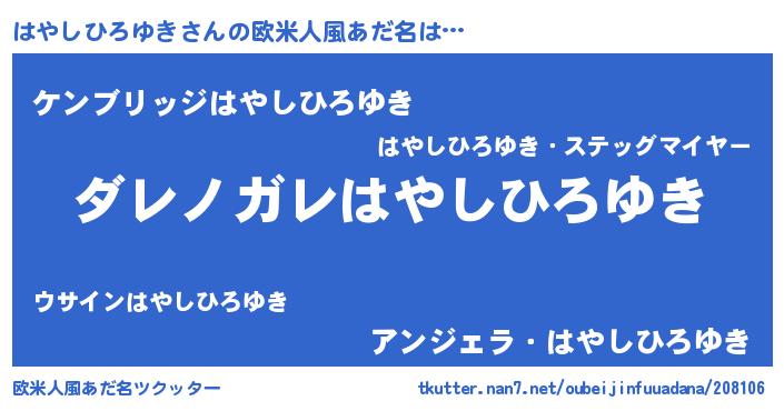 | 意味不明あだ名 | 『住所不定無職はやしひろゆき(53歳)』 |