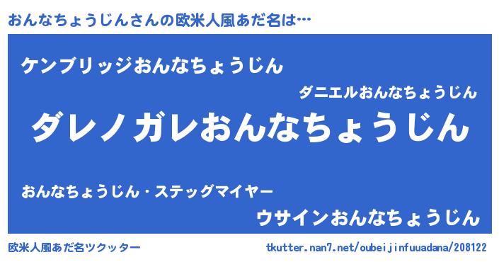 | 意味不明あだ名 | 『住所不定無職おんなちょうじん(5歳)』 |