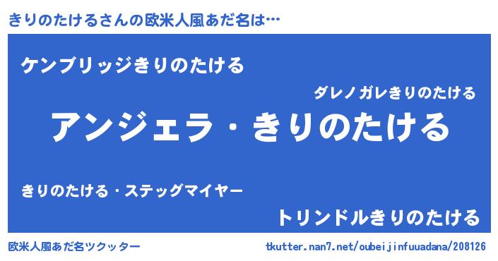 | ヒーロー風カッコイイあだ名 | 『最強戦士キリノタケル』『仮面キリダー』 |