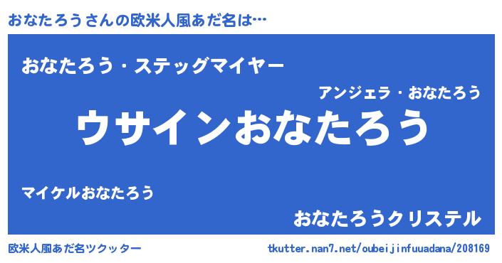 | 男性向けラノベタイトル風あだ名 | 『おなたろうの嫁は女の子じゃないと思った?』 |