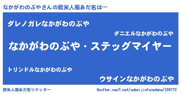 | 意味不明あだ名 | 『住所不定無職なかがわのぶや(8歳)』 |