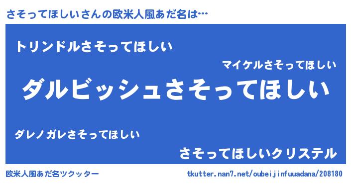 | 男性向けラノベタイトル風あだ名 | 『さそってほしいという概念が存在しない退屈な世界 』 |