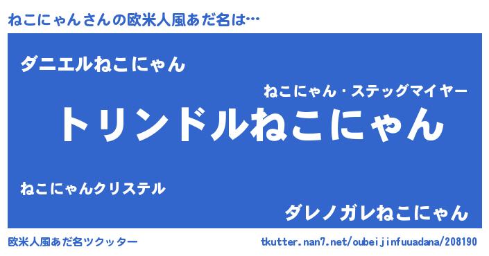 | 男性向けラノベタイトル風あだ名 | 『ネコニャンスレイヤー』 |
