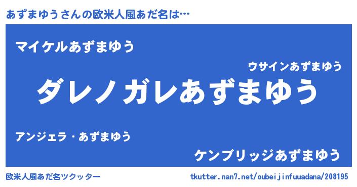 | 男性向けラノベタイトル風あだ名 | 『魔弾の王とあずまゆう』 |