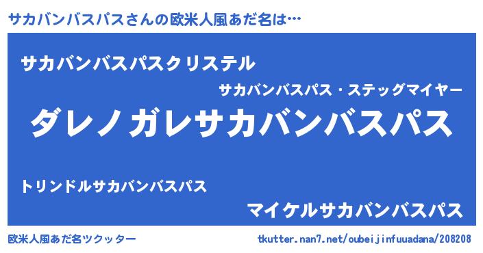 | 男性向けラノベタイトル風あだ名 | 『この素晴らしい世界にサカバンバスパスを!』 |